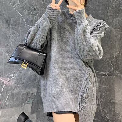 カシミヤタッチ ベーシックニット 欧米 イレギュラー 個性 フリンジ パッチワーク ツイスト ゆったり セーター カジュアル おしゃれ ウォーム ニットカーディガン