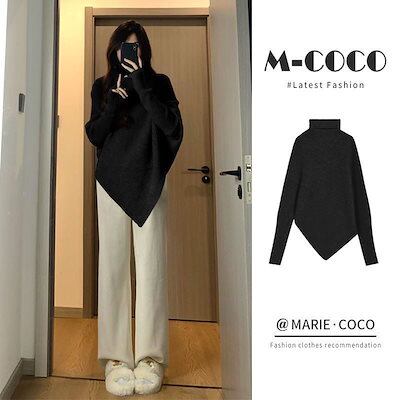 カシミヤタッチ ベーシックニット イレギュラー 個性 高級感 ニッチデザイン ハイネック ジェントルスタイル ニットカーディガン 着痩せ セーター
