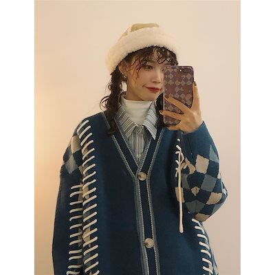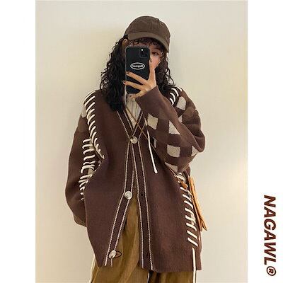 カシミヤタッチ ベーシックニット 欧米 個性 レトロ 流行り パッチワーク コントラストカラー ゆったり 百掛け カーディガン ニットカーディガン 男女兼用