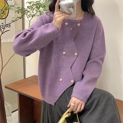 カシミヤタッチ ベーシックニット 秋冬の新作ゆるふわニットカーディガン女性コートニッチデザイン不規則なデザイン感のダブルブレストセータートップス
