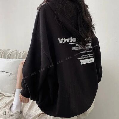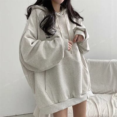 パーカー ゆったりスウェット韓国ファッション 秋冬薄手ゆったり 百掛け 衛衣ミディアムトップス マウンテンパーカー