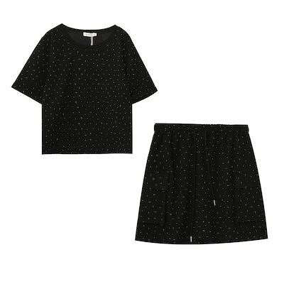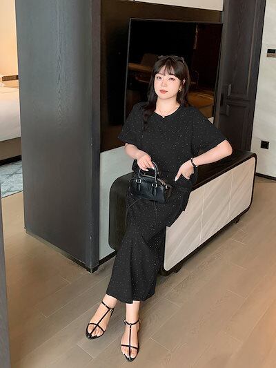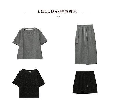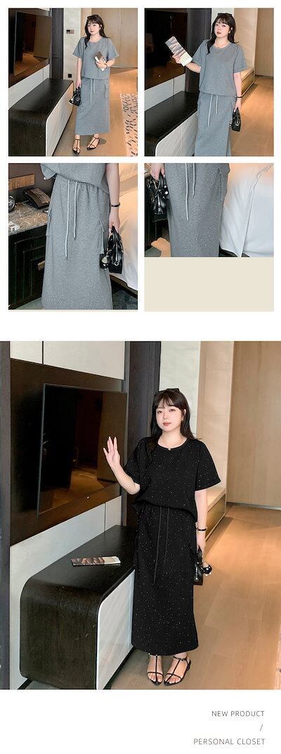 【ぽちゃまに】 夏 通勤風 上下セット 長/短スカート2タイプ 大きいサイズ スウェットセット カジュアル 体型カバー レディース セットアップ メガ割 福袋 T