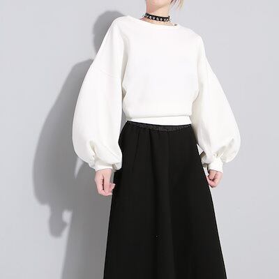 【J.Fashion】 2着WAY 飾りベルト スウェット ラウンドネック 蝶結び コットン 春春 パフスリーブ レディーストップス 日焼け止め ブラウス メガ割 福袋 T