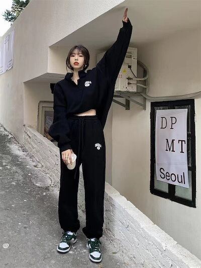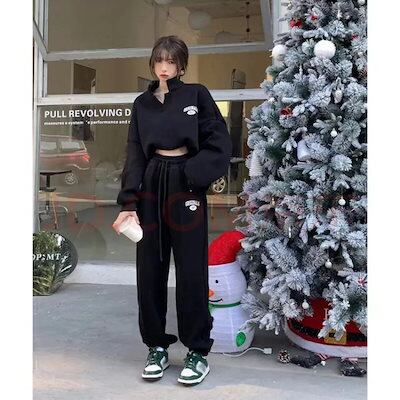 春 二点セット裏起毛 学生 セットアップ 上下二点肌にやさしい 綿長袖立ち襟 アウター無地スウェットパンツ韓国ファッション 福袋 T