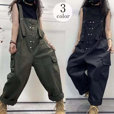 春春 サロペット ワイドパンツ 調節可能 個性 ゆったり 大きいサイズ シンプル 韓国ファッション 着やせ ポリエステル オーバーオール ストレート ズボン 福袋 T