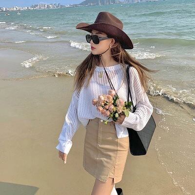 Tシャツ 韓国 新作 ブラウス シフォンブラウス シアーシャツ トップス シャツ UVカット 透かし彫り ニット 紫外線対策 冷感 レディース シースルーシャツ 長袖