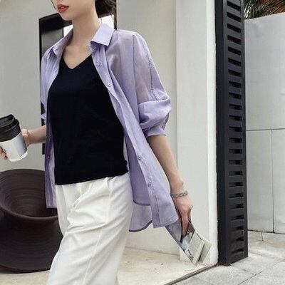 Tシャツ 韓国 シフォンブラウス カットソー UVカット 紫外線対策 シアーシャツ トップス 流行り シャツ レディース ロングシャツ シースルーシャツ 長袖