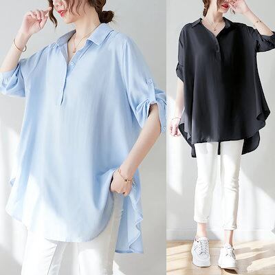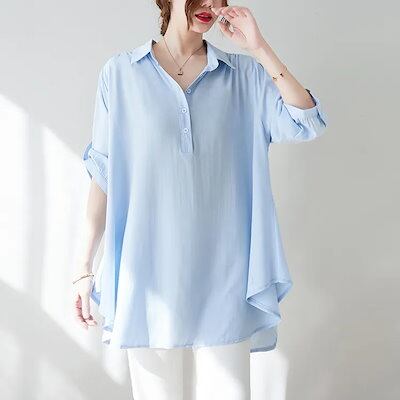 Tシャツ 韓国 シフォンブラウス カットソー 夏 港? シャツ 七分袖 トップス ランタン袖 花柄 薄手 レディース シースルーシャツ 気質 着やせ