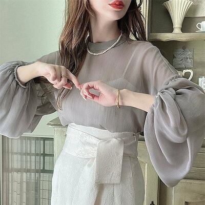 Tシャツ 韓国 2025新作 今年も人気!シフォン シャツVネック 大きいサイズ 着やせ 気質カットソー シフォンブラウス おしゃれ 長袖 シャツ 高級感 長袖 ストレッチ シャツブラウ