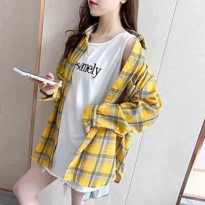 韓国 長袖 ブラウス シアーシャツシフォンブラウス チェック 体型カバー ブラウス プラウス 通気性涼 シャツ カーディガン 韓国 大きいサイズ 日焼け止め UV