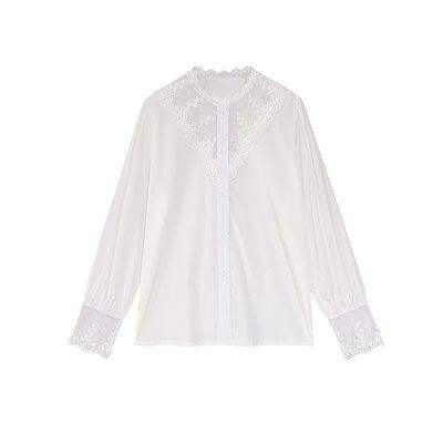 【2枚で200円OFF】韓国 長袖 ブラウス カットソー シフォンブラウス レース 白 体型カバー 大きいサイズ 春 総レース フォーマル オケージョン シースルー シャツ