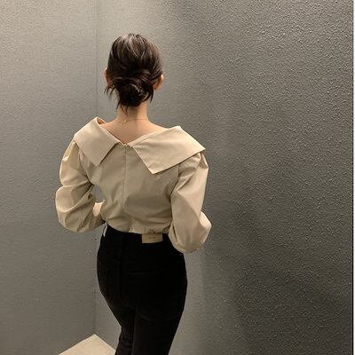 韓国 ブラウス 長袖 カットソー シフォンブラウス Tシャツ フレンチ シャツ レディース 体型カバー オリジナルデザイン トップス 長袖シャツ 気質 高級感 怠惰な風 ゆったり