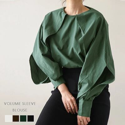 Tシャツ 韓国 カットソー シフォンブラウス 2024春 シャツ 長袖 チュニック ランタン袖 個性デザイン 綿 ラウンドネック 柔らかい 大きいサイズ 高級感 怠惰な風 ゆったり ブラウス お肌に