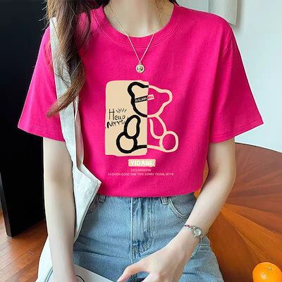 綿100%! !Tシャツ 半袖 ロングTシャツ コットン 丸襟 トップス おしゃれ かわいい 定番 シンプル Tシャツ レディース