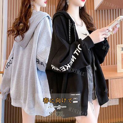 【新作】春に向けてパーカー レディース韓国版ゆったりアルファベットの連帽カーディガンコート長袖トップス女