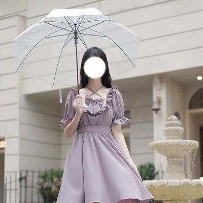 愛されドッキングワンピース夏の日系学生のウエストを丸くした可愛いリボン芋紫姫バブリースリーブワンピースlolitaワンピース ドレス