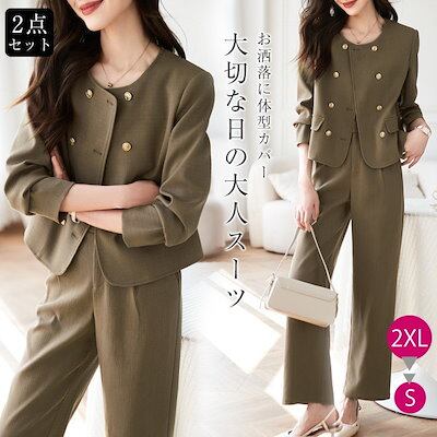 パンツスーツ セットアップ レディース フォーマル 上下セット 春 秋 冬 無地 カジュアル カーディガン 長袖 ワイドパンツ ツイード風 着?せ ジャケット ロングパンツ 通勤 卒園式 卒業式 入学