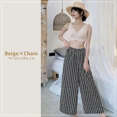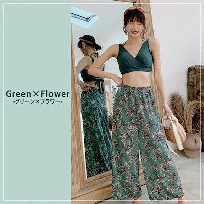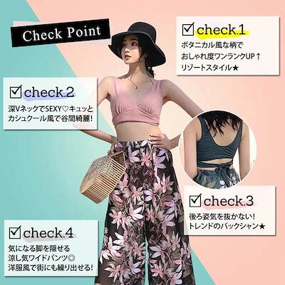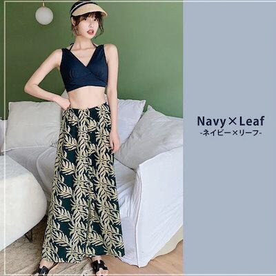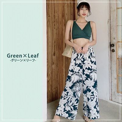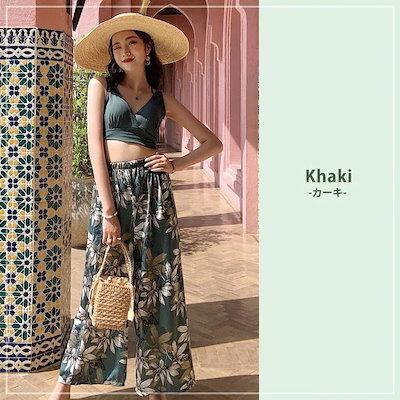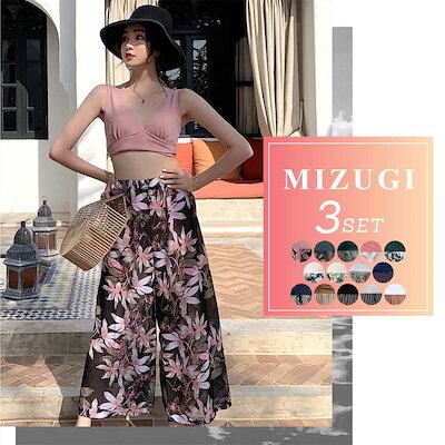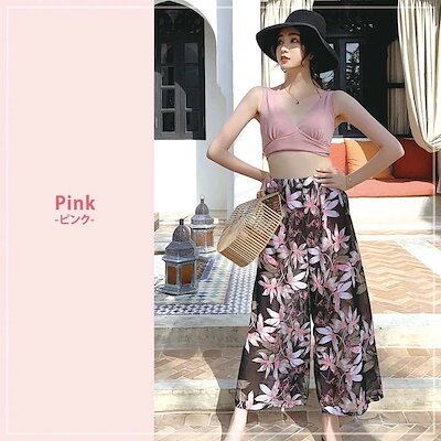 水着 レディース 体型カバー 水着 タンキニ Vネック ビキニ ワイドパンツ 3点セット 20代 30代 40代 ママ水着 ロングパンツ バックシャン カシュクール風 可愛い お洒落 くすみカラー ボ