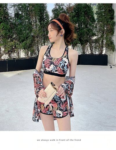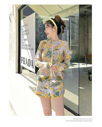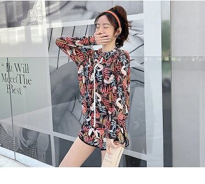 水着 タンキニ レディース 体型カバー ビキニ トップス 3点セット ジップアップパーカー 花柄 フィットネス スポーティー ボタニカル柄 水陸両用 旅行 プール アウトドア ラッシュガード ビーチ