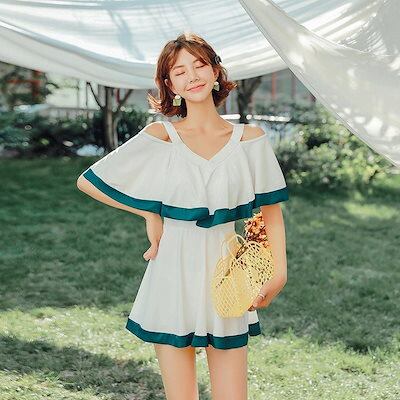 ワンピース水着 レディース 水着 ワイヤーあり フリル 海 プール 女の子 おしゃれ 体型カバー 小胸 大人可愛い ガーリー リゾート 海の日 きれいめ 大きいサイズ