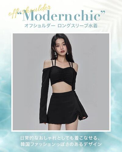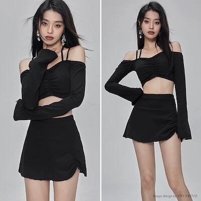水着 レディース セパレート 体型カバー ビキニ タンキニ 長袖 オフショル水着 スカパン スカート シアーショルダー おしゃれ ワイヤーなし 30代 20代 LL M L 可愛い