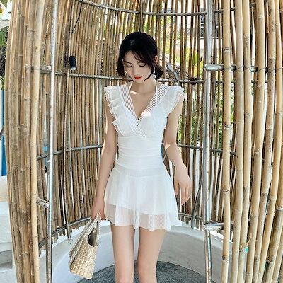 水着 レディース ワンピース 可愛い 体型カバー おしゃれ ファッション オトナ女子 海 ビーチ 海水浴 リゾート ホワイト ブラック フレアスカート お洒落 無地