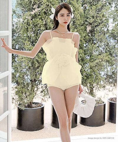 水着 レディース 体型カバー セパレート 上下セット ゴージャス 水着っぽくない水着 ファッション水着 フラワーモチーフ コサージュ ボリューミー スイムウェア レディース水着 M L XL 水着体型