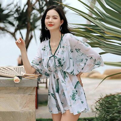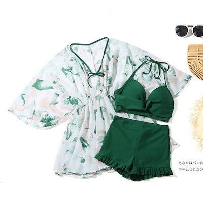 水着 レディース 体型カバー UVカット ビキニ 水着 タンキニ水着 3点セット オトナ女子 ママ水着 ミセス ホルターネック ショートパンツ フレア セクシー 太もも お尻 お腹カバー ぽっちゃり