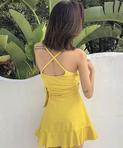 水着 レディース水着 オフショルダー&スカートのワンピース水着 胸元カシュクールタイプ オールインワン パッド付き ノンワイヤー バックシャン フレアスカートでヒップ 太ももが魅力的 インナ