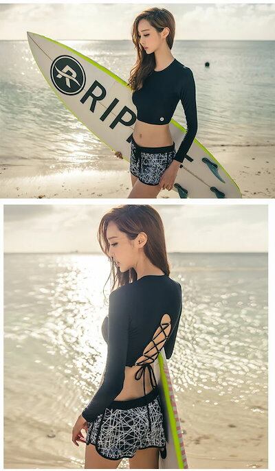 激安 レディース水着 3点セット水着 トップス+パンツ2 レディースビキニ 水着レディース サーフィンビキニ 長袖水着 ビーチリゾート 海水浴 ビーチ セクシー かわいい ラッシュガード+ショートパン