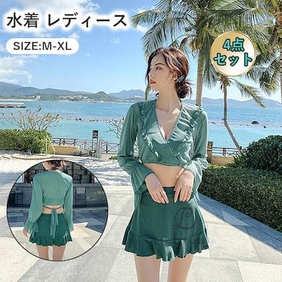 水着 レディース 体型カバー 可愛い 4点セット フリル M L XL タンキニ 水着 タンキニ 露出控えめ セパレート 上下セット スカート 可愛い水着 安全パンツ みずぎ 学生 レディース スイム