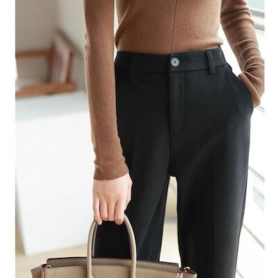 脚長効果!スキニーデニムパンツ 秋冬のミニストレートツイードパンツの裾のデザイン煙管パンツ研ぎ毛ウエストパンツ レディース 韓国