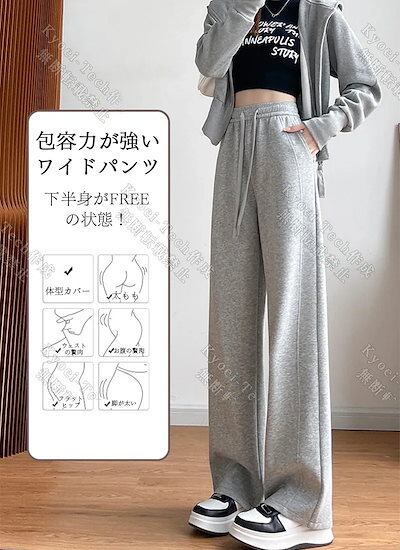 2枚200円FFワイドパンツ ト 裏起毛 スポーツズボン 脚長効果 レディース ガウチョパンツ ロングパンツ トレーニングパンツ 低身長 高身長 ズボン ウエストゴム ゆったり 無地1502