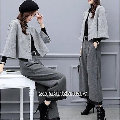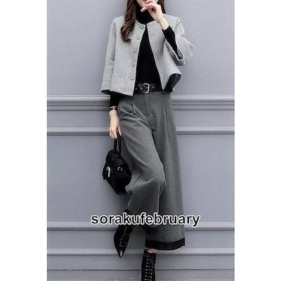 「エレガント」レディーススーツ 七五三スーツセット お宮参り ミセス 30代40代50代 ママ 母の日 2点セットスーツ ジャケット+ガウチョパンツ セットアップ S2