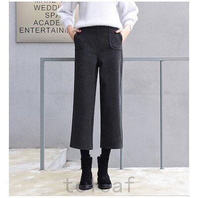 クロップドパンツレディースガウチョワイドパンツきれいめ通勤OL無地シンプルハイウエスト秋冬