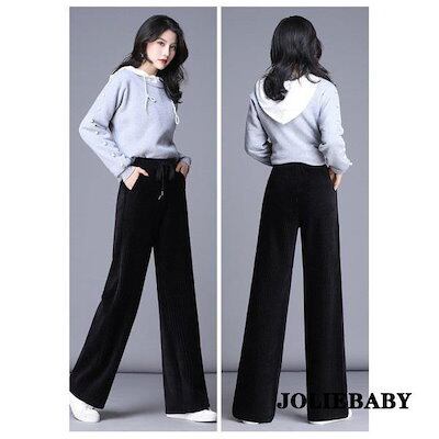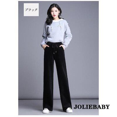 ワイドパンツ レディース 秋冬 ガウチョパンツ ボトムス パンツ ズボン ロング丈 コーデュロイ 厚手 裏起毛 ウエストゴム ロングパンツ 秋冬 冬