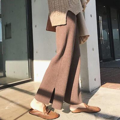 (新年は通常通り出荷)大きいサイズ リブパンツ 厚手 レディース 春 ワイドパンツ パンツ 秋 リブ リブニットパンツ ガウチョパンツ 秋冬 冬 ストレート ウエストゴム