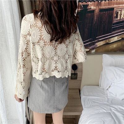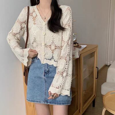 シアーシャツ ブラウス UVカット ショート トップス レディース 春夏 新作 Vネック 透かす 長袖 カーディガン 韓国ファッション 福袋 T