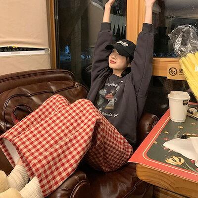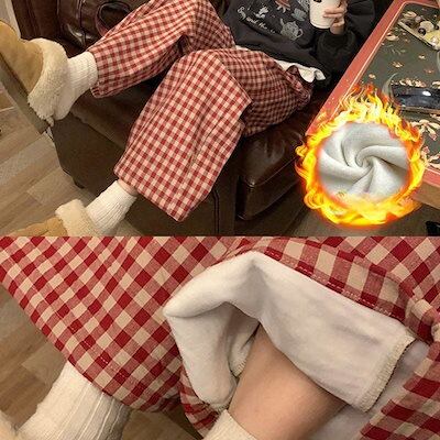 ひんやりボトムス 裏起毛 レトロ チェック ハイウエスト カジュアルズボン レディース 春 ワイドパンツ ロングパンツ 薄手 ホームウェア コーデュロイパンツ 福袋 T