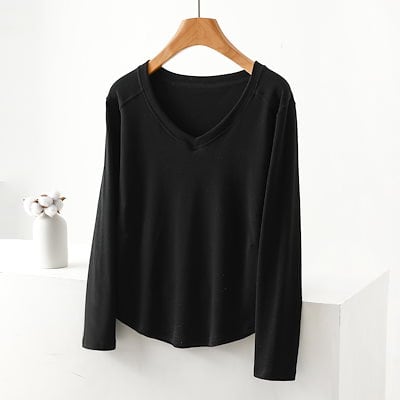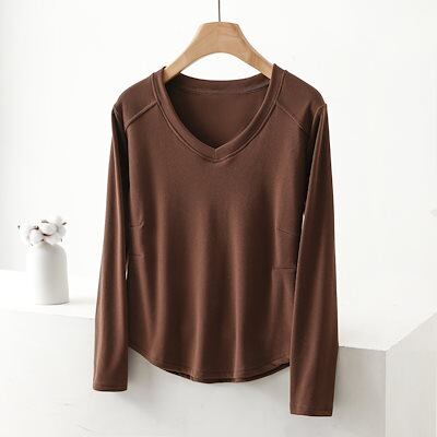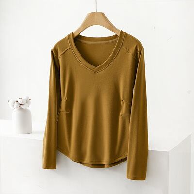Tシャツカットソー Vネック 長袖 暖かい tシャツ レディース 春 無地インナー アンダーウェア 裏起毛 厚手 トップス 福袋 T