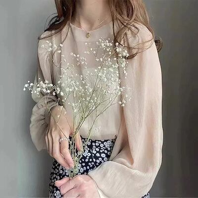 日韓 新作 ランタン袖 ブラウス 軽薄 シフォン シャツ 着痩せ 百掛け トップス 気質 カジュアル レディース ワイシャツ 福袋 T