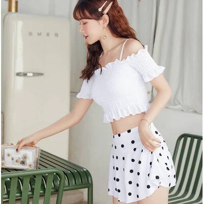 韓国 水着 レディース オフショルダー 体型カバー リゾート ビーチ 水着 ワンピース 2点セット セクシー バックシャン 学生 Y52
