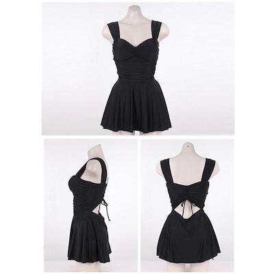 水着 ワンピース 体型カバー 大きなサイズ ウエストのくびれを強制メイク 黒2点セット セパレート
