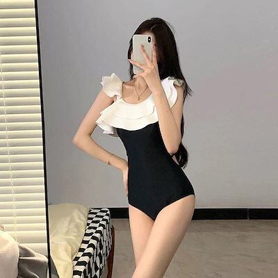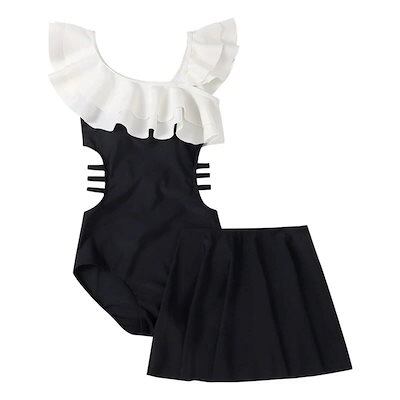 水着 韓国ファッション?体型カバー 水着 ワンピース レディース 2点上下セット 大きいサイズ 可愛い 長袖ラッシュガード大きいサイズ水着 ラッシュガード
