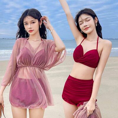 水着レディース3点セットスイムウェアセクシー無地ホルターセパレート胸パッドワイヤー無おしゃれ温泉水泳海ビーチ春夏