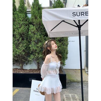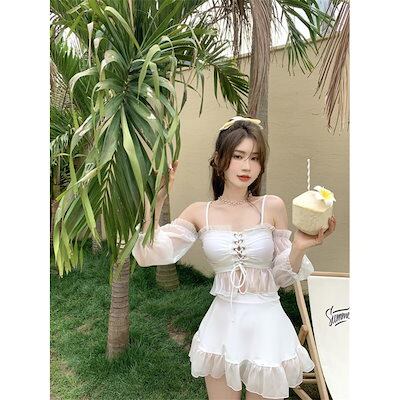 水着レディース3点セットスイムウェアセクシーセパレート胸パッドワイヤー無おしゃれホワイト学生海水浴ビーチ春夏ギフト