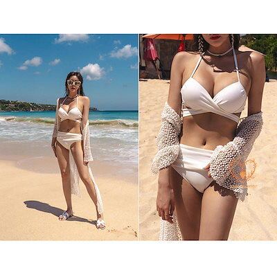 ビーチ 韓国ファッション 30代 水着 盛れる ワイヤーなしクロス ルターネック レディース セパレート ビキニ 胸パッド 6色 40代 20代