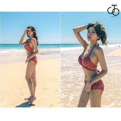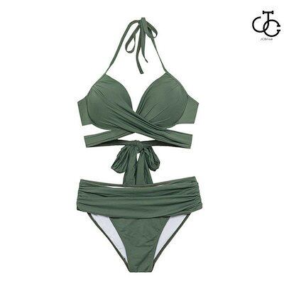 代 レディース 水着 盛れる 胸パッド 代 ワイヤーなしクロス 韓国ファッション ビキニ ビーチ ルターネック セパレート 色 代