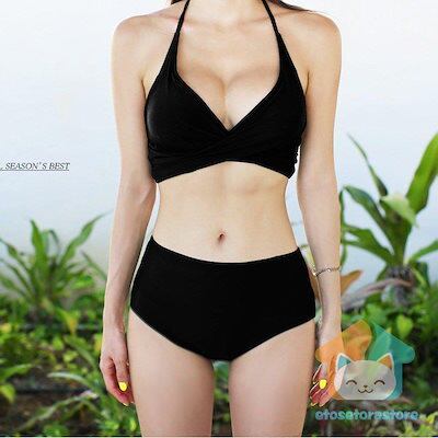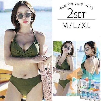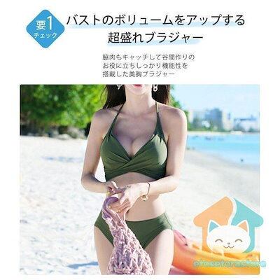 レディース ビキニ ホルターネック ビーチ 盛れる ワイヤーなし 胸パッド 水着 セパレート クロス