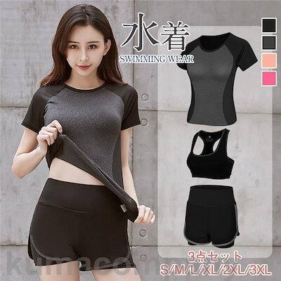 水着 レディース 水着セット スクール水着 3点セット タンキニ セパレート 速乾 ヨガ ジム運動用 体型カバー 胸パッド ワイヤー無し 海水浴